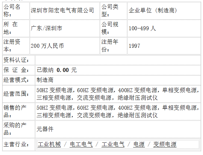深圳市陽宏電氣有限公司